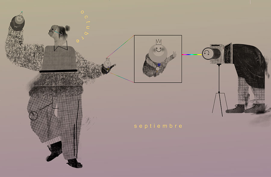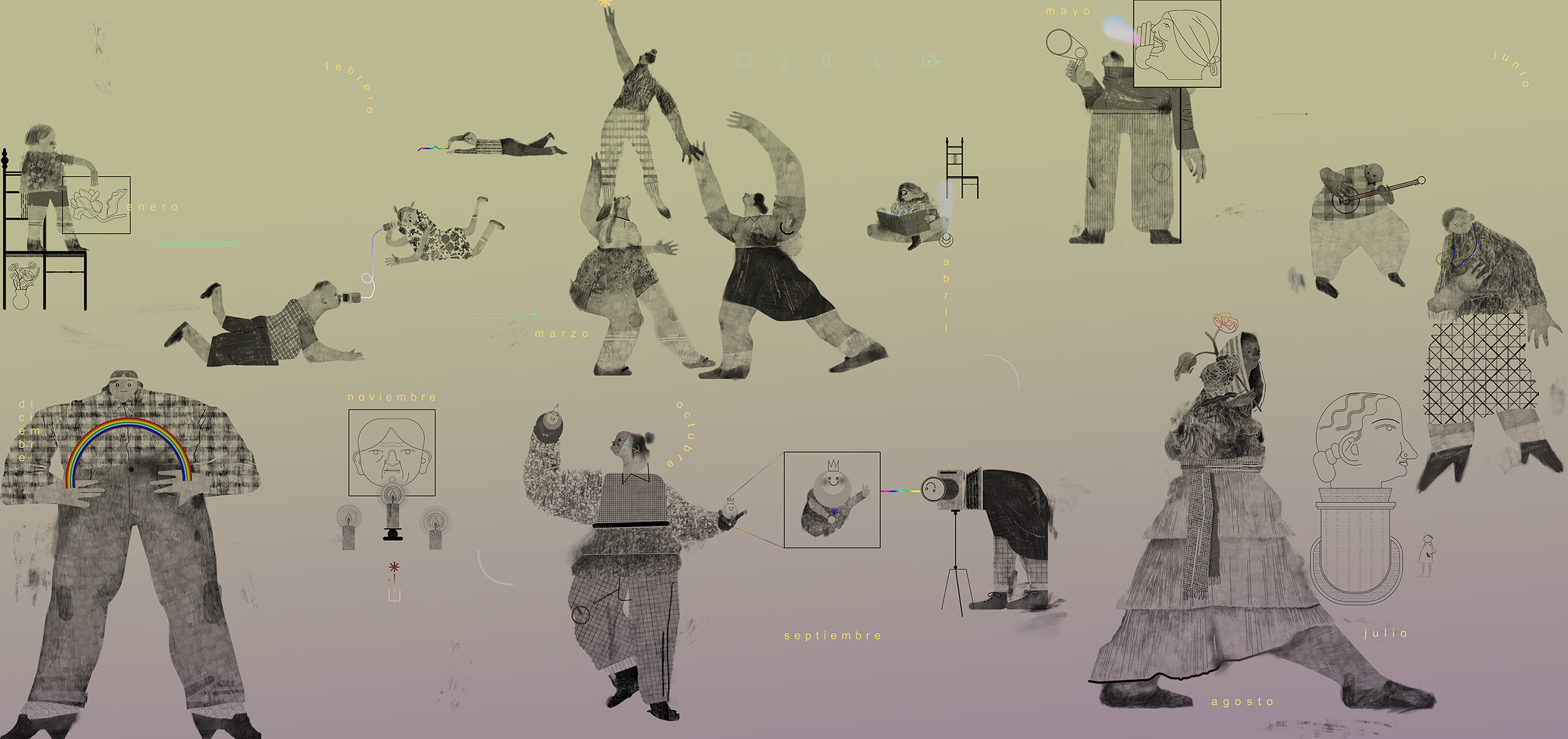 Calendario y gráfica para las actividades anuales del Centro Cultural de España en el Salvador, reflejando los ejes temáticos que estructuran las actividades mensualmente, 2021.